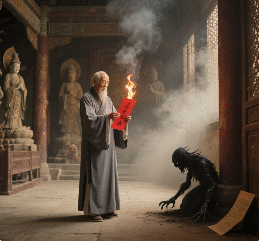 In ancient times, people believed that all things had spirits, giving rise to nature worship, soul worship, and ancestor worship. This evolved into a belief in the Heavenly Lord and the mandate of Heaven, forming a mythological system. Primitive ghost and god worship combined with religious relations to create ancestor worship, and shamans emerged to bridge the gap between ghosts/deities and humans, forming three systems: deities, ghosts, and humans. Taoism, the most mysterious existence in the East, serves as a bridge between the Three Realms (heavenly realm, human world, and netherworld), using its cultivation and divine power to help people avoid misfortunes and seek blessings.